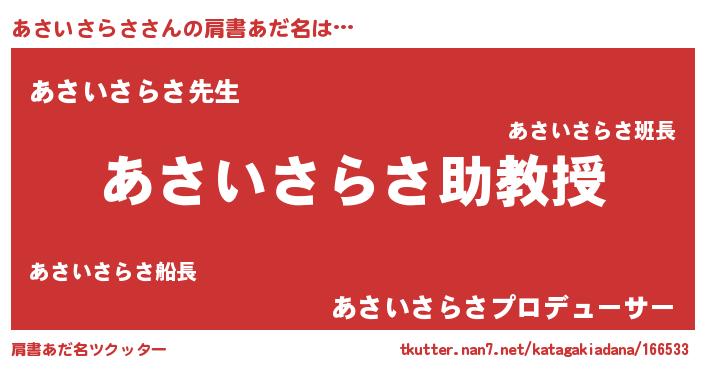 | ヘコむあだ名 | 『あさいさらさ(笑)』『あさお』 |