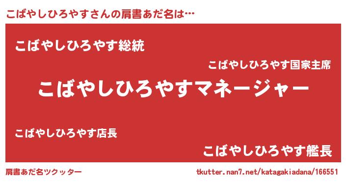 | 意味不明あだ名 | 『自称こばやしひろやす』 |