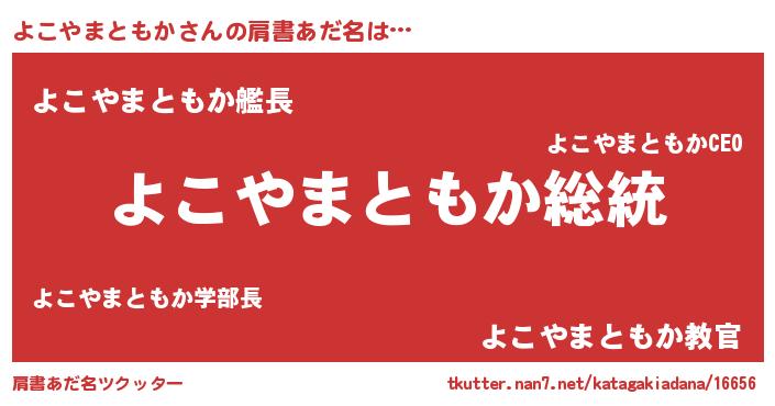 | ヒーロー風カッコイイあだ名 | 『最強戦士ヨコヤマトモカ』 |