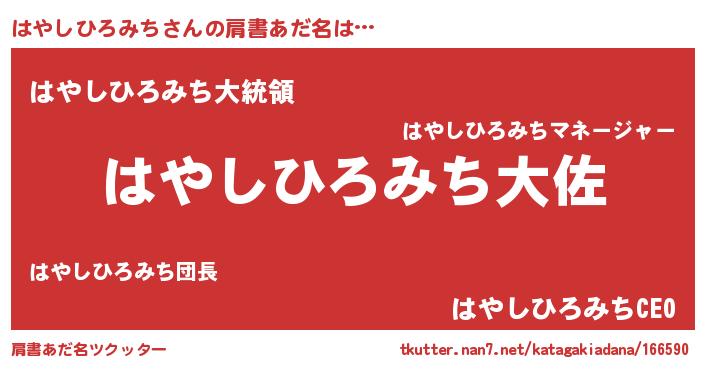 | 男性向けラノベタイトル風あだ名 | 『転生したらはやしひろみちだった件』 |