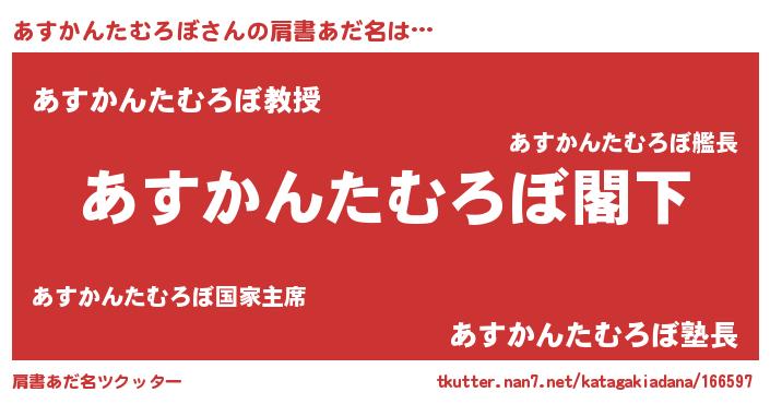 意味不明あだ名 | 『自称あすかんたむろぼ』 |