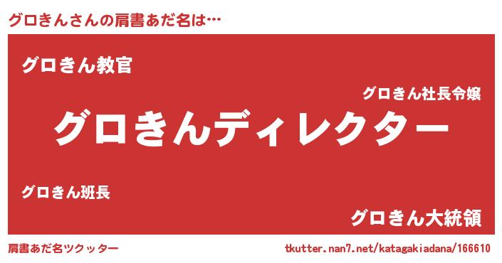 | 男性向けラノベタイトル風あだ名 | 『はたらくグロきんさま!』 |