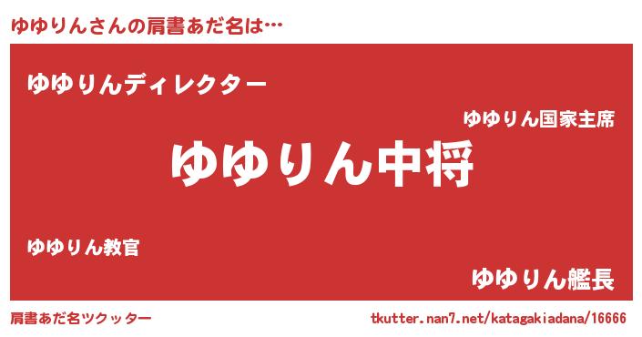 | 男性向けラノベタイトル風あだ名 | 『ゆゆりん~年齢イコール彼女いない歴の魔法使い~』 |