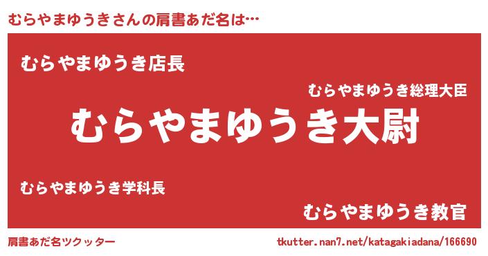 | 男性向けラノベタイトル風あだ名 | 『ムラヤマユウキスレイヤー』 |
