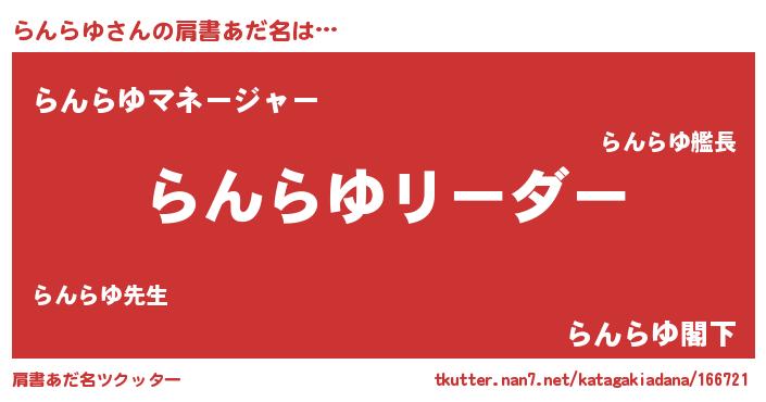 | 意味不明あだ名 | 『とにかく怪しいらんらゆ』 |