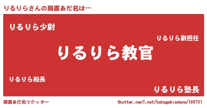 | 男性向けラノベタイトル風あだ名 | 『この素晴らしい世界にりるりらを!』 |