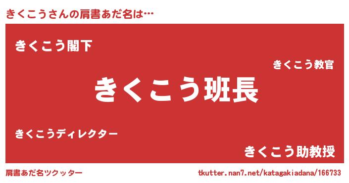 | ヒーロー風カッコイイあだ名 | 『暗黒騎士キク』『超時空戦士キクコウ』 |