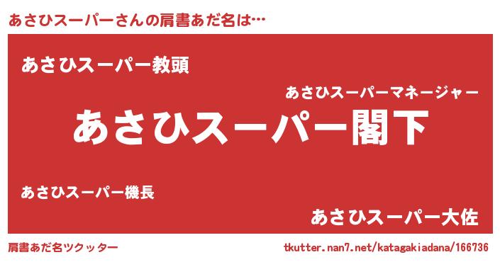 | ヒーロー風カッコイイあだ名 | 『ウルトラ戦士アサヒスーパー』 |