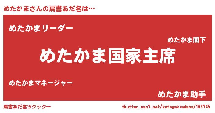 | ヒーロー風カッコイイあだ名 | 『ウルトラめたかまマン』『炎刃騎士メタ』 |