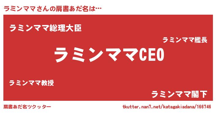 | ヒーロー風カッコイイあだ名 | 『スーパーラミンママ』『黄金騎士ラミ』 |