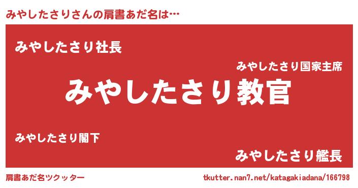 | 男性向けラノベタイトル風あだ名 | 『この素晴らしい世界にみやしたさりを!』 |