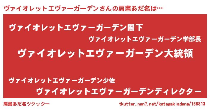 | 欧米人風あだ名 | 『ヴァイオレットエヴァーガーデンクリステル』 |
