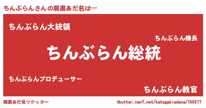 | 女子向けラノベタイトル風あだ名 | 『ちんぶらんストレイドッグス』 |