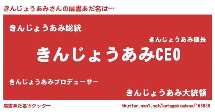 | ヒーロー風カッコイイあだ名 | 『スーパーキンジョウアミ』 |