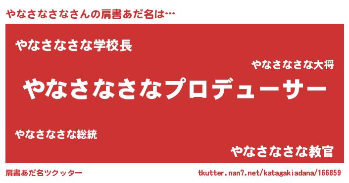 | 男性向けラノベタイトル風あだ名 | 『やなさなさなに滅ぼされるだけの簡単なお仕事です』 |