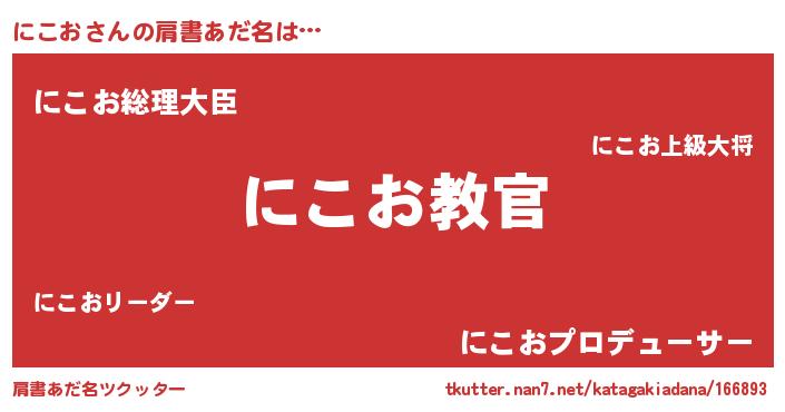 | 男性向けラノベタイトル風あだ名 | 『この素晴らしい世界ににこおを!』 |