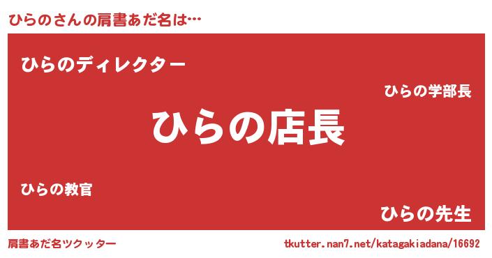 | ヘコむあだ名 | 『ひらにゅー』『ひらの(爆)』 |