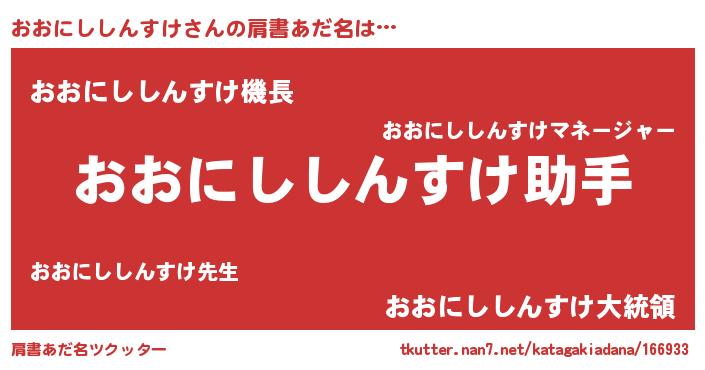 | 男性向けラノベタイトル風あだ名 | 『ノーゲーム・ノーオオニシシンスケ』 |