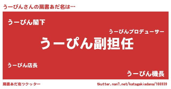 | 意味不明あだ名 | 『永久保存うーぴん』『自称うーぴん』 |