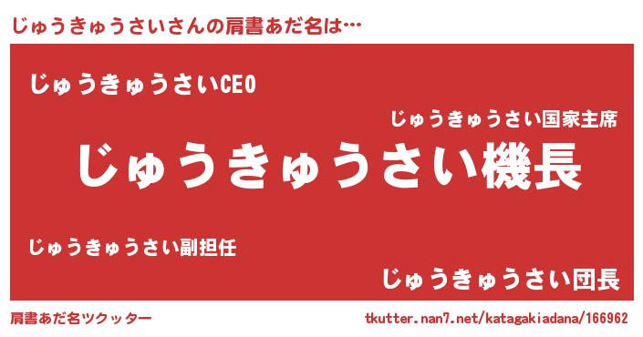 | ヘコむあだ名 | 『じゅっふぃ~』『じゅ太郎』 |