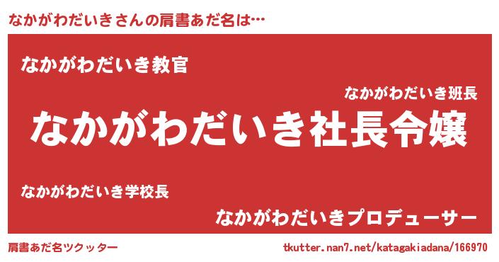 | 女子向けラノベタイトル風あだ名 | 『なかがわだいき姫と円卓の騎士』 |