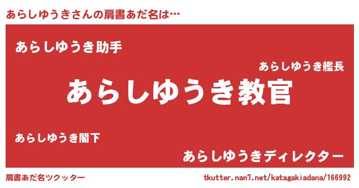 | 男性向けラノベタイトル風あだ名 | 『この素晴らしい世界にあらしゆうきを!』 |
