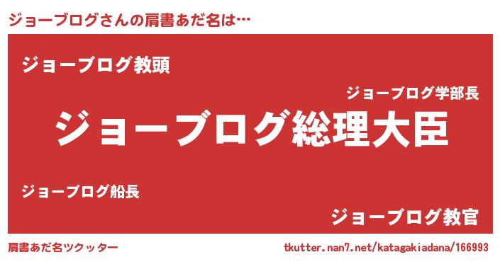 | 男性向けラノベタイトル風あだ名 | 『やはりジョーブログの青春ラブコメはまちがっている 』 |
