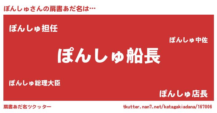 | 伝説のあだ名 | 『古より伝わる吟遊詩人ぽんしゅ』 |