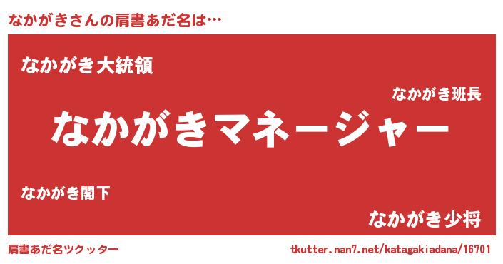 | ポケモン風あだ名 | 『ナカゴンZ』『ナカガダネ』 |