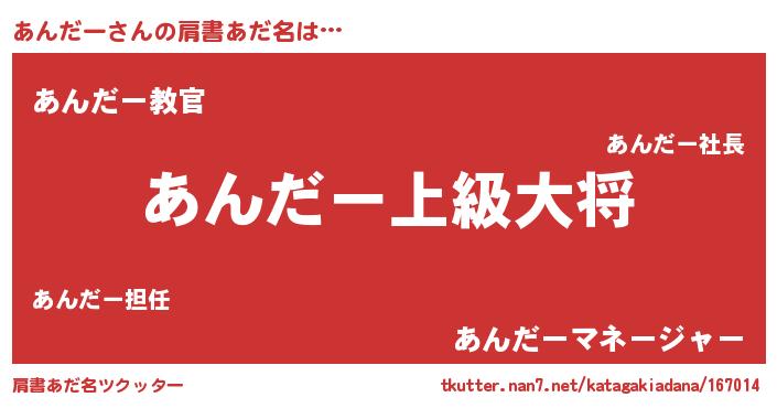 | 男性向けラノベタイトル風あだ名 | 『転生したらあんだーだった件』 |