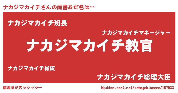 | 男性向けラノベタイトル風あだ名 | 『この素晴らしい世界にナカジマカイチを!』 |