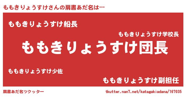 | 男性向けラノベタイトル風あだ名 | 『ももきりょうすけの嫁は女の子じゃないと思った?』 |