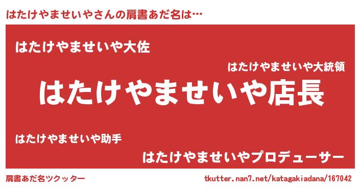 | 胡散臭い通販商品みたいなあだ名 | 『モテモテ間違いなし水晶球…その名も「はたけやませいや」』 |