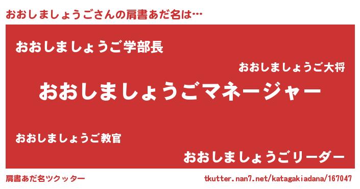 | 男性向けラノベタイトル風あだ名 | 『はたらくおおしましょうごさま!』 |