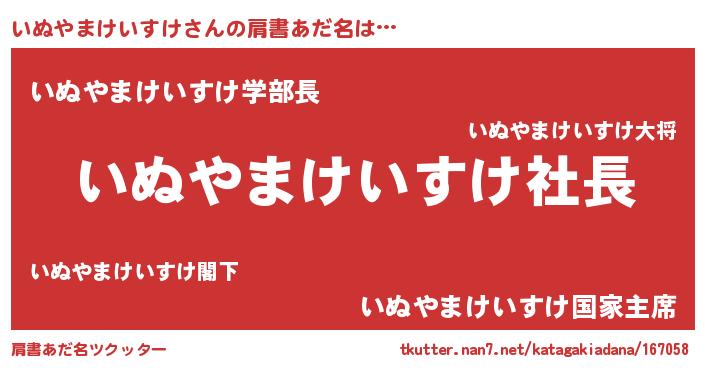 | 胡散臭い通販商品みたいなあだ名 | 『必ず成功するブレスレット…その名も「いぬやまけいすけ」』 |