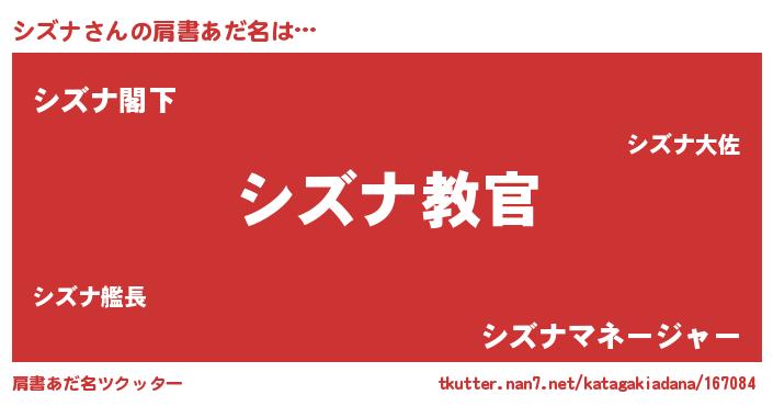 | 男性向けラノベタイトル風あだ名 | 『魔弾の王とシズナ』『シズナスレイヤー』 |