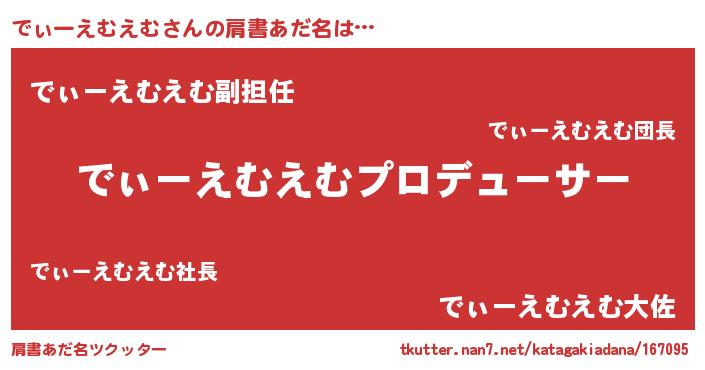 | ヘコむあだ名 | 『でぃーえむえむ(震え声)』『でぃぷりん』 |
