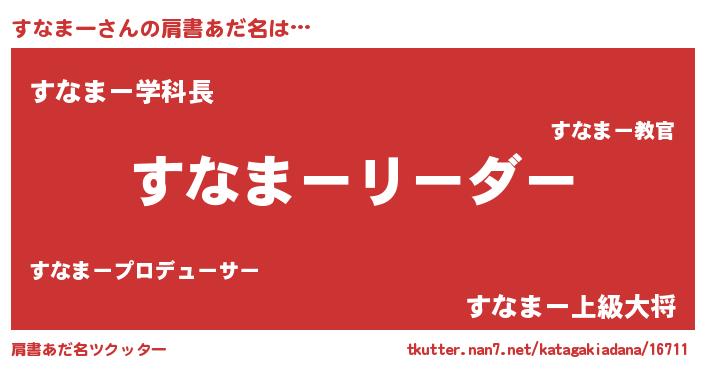 | 女子向けラノベタイトル風あだ名 | 『すなまー様がみてる』『すなまー恋絵巻』 |