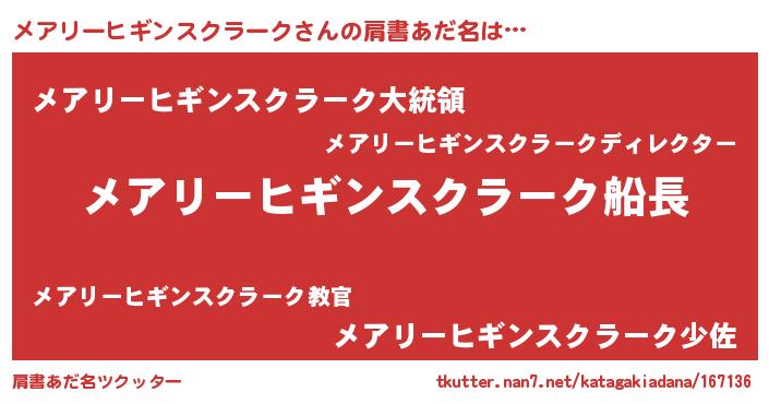 | 欧米人風あだ名 | 『メアリーヒギンスクラーク・ステッグマイヤー』 |