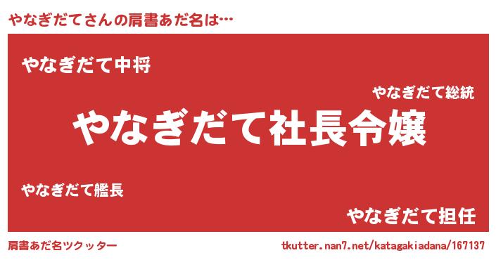 | ヘコむあだ名 | 『やなもー』『やなぎだて(苦笑)』 |