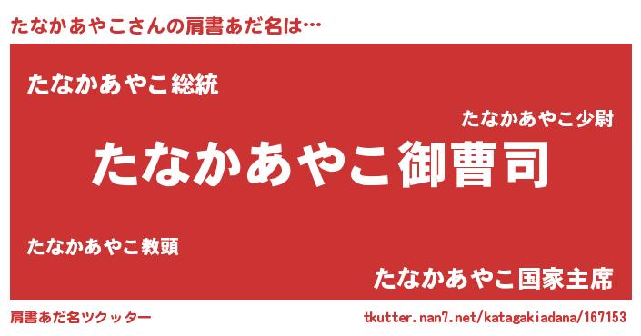 | 女子向けラノベタイトル風あだ名 | 『(仮)たなかあやこのやんごとなき事情』 |