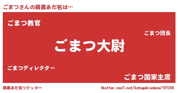 | 男性向けラノベタイトル風あだ名 | 『転生したらごまつだった件』 |