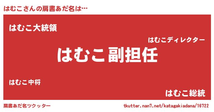 | ヒーロー風カッコイイあだ名 | 『ネオハムコ』『ウルトラはむこマン』 |