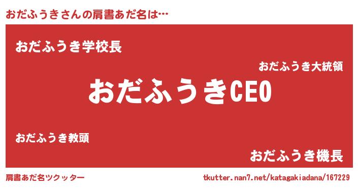 | 男性向けラノベタイトル風あだ名 | 『おだふうきの憂鬱』『緋弾のオダフウキ』 |
