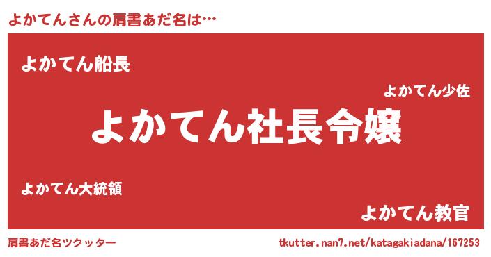 | ヒーロー風カッコイイあだ名 | 『スーパーヨカテン』『仮面ヨカダー』 |