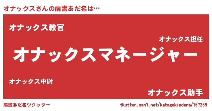 | 意味不明あだ名 | 『住所不定無職オナックス(5歳)』 |