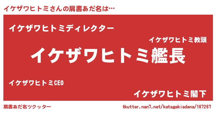 | ヘコむあだ名 | 『イケザワヒトミ(笑)』『イケふぇ~』 |