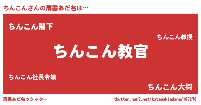 | 意味不明あだ名 | 『住所不定無職ちんこん(95歳)』 |