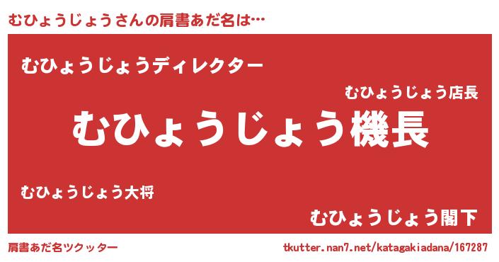 | ヘコむあだ名 | 『むひもー』『むひょうじょう(笑)』 |
