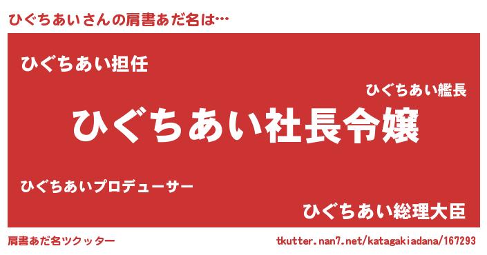 | 男性向けラノベタイトル風あだ名 | 『ひぐちあいの憂鬱』 |